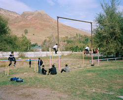 The river murmurs gently, the peregrin high in the sky at noon, a frisky spring morning, here in Mailuu-Suu, Kyrgyzstan. As the water inches away, eroding the arid slopes, it’s only a matter of time until all vulnerable tailings reach down river into the populous Ferghana valley. An old game of ducks and drakes, the ripples of Soviet meddling revealed like ceaseless waves crashing on a maintenance-free seawall. Lenin’s golden flakes blowing in the wind, the branches flutter and creak. As the water seeps, so does the international aid into the malignant nest of corruption’s deceit. A fluke of a stockpiling war, a relay race, left for the children. The birthplace of the first bomb, Lavrenti Beria ensured top notch uranium, no less. Only the finest ‘yellow cake’ was once guaranteed here in ‘Mailbox’ 200. Fission sears in the shadow, as the atoms split and the sheep graze quietly at noon. As luck would have it, for people who never wanted to play. ‘Two urns in Jove’s palace, gifts. One good, and the other, evil’. (Homer, 1997) In time, both received, the stadium empty across a scarred landscape. An open wound, all for show; cost of entry: human. The murals of old shall finally perhaps edify after all. A midsummer’s eve long awaited performance glistening, refracted through the opera glass.